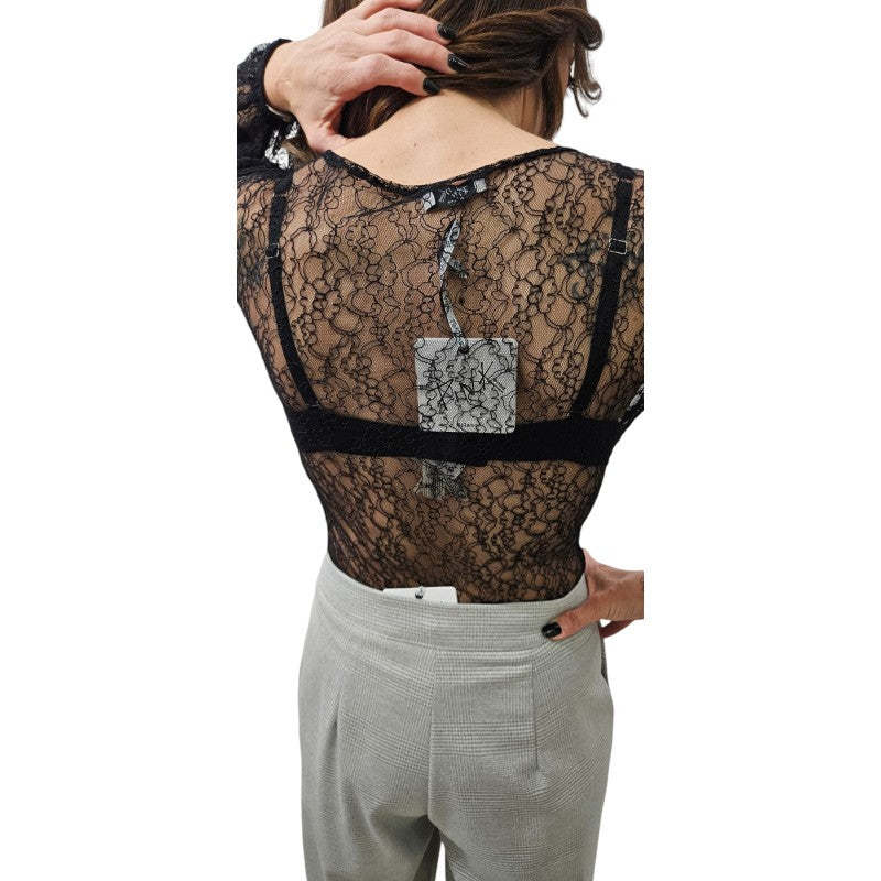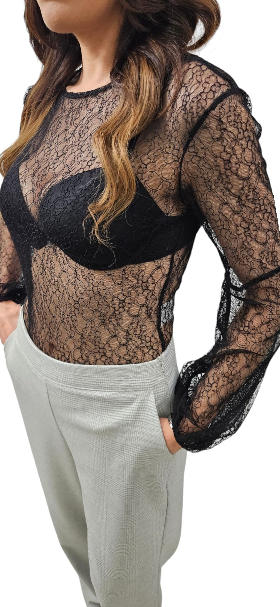 Il body in pizzo merlettato della PINK MOOD MILANO è un capo raffinato che unisce tradizione e modernità. Le sue maniche lunghe con fondo a sbuffo aggiungono originalità al design, rendendolo ideale per serate glamour ed eventi speciali. Questo body esalta le curve femminili con eleganza, garantendo un look sensuale e sofisticato.