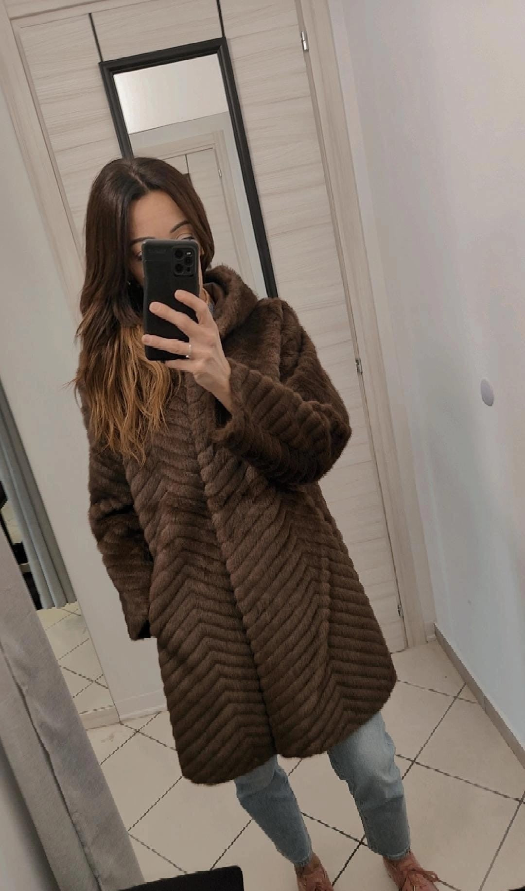 Cappotto con cappuccio in eco pelliccia