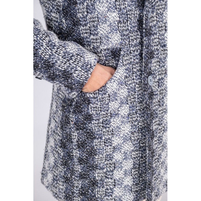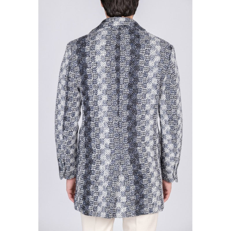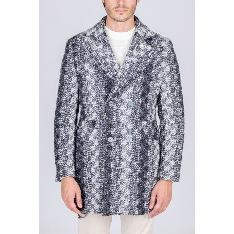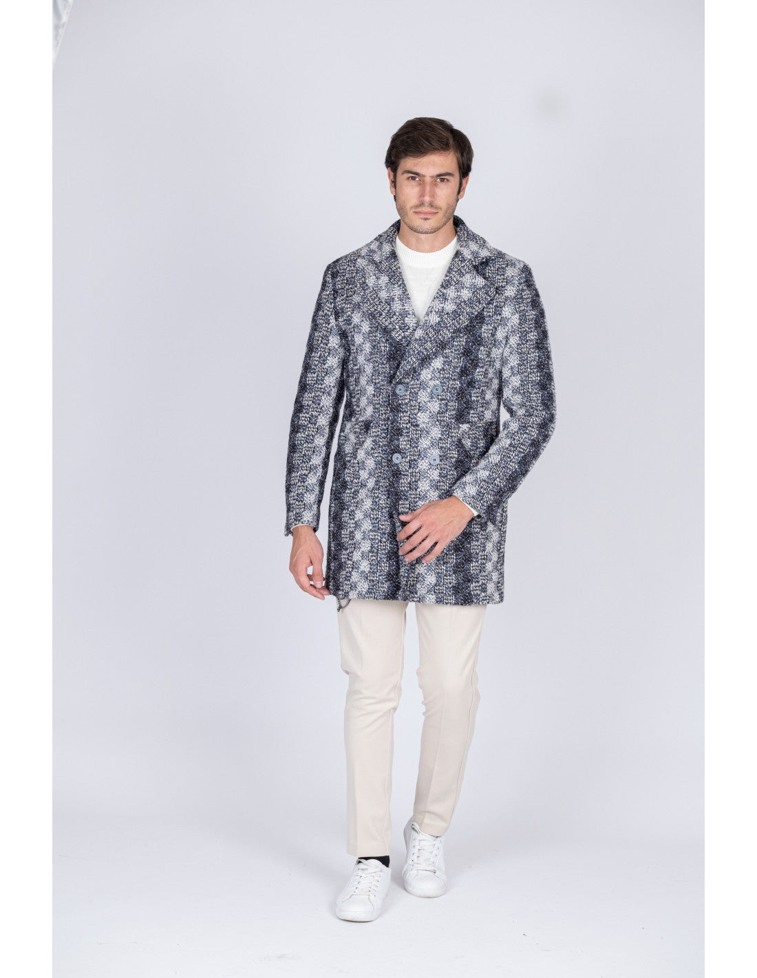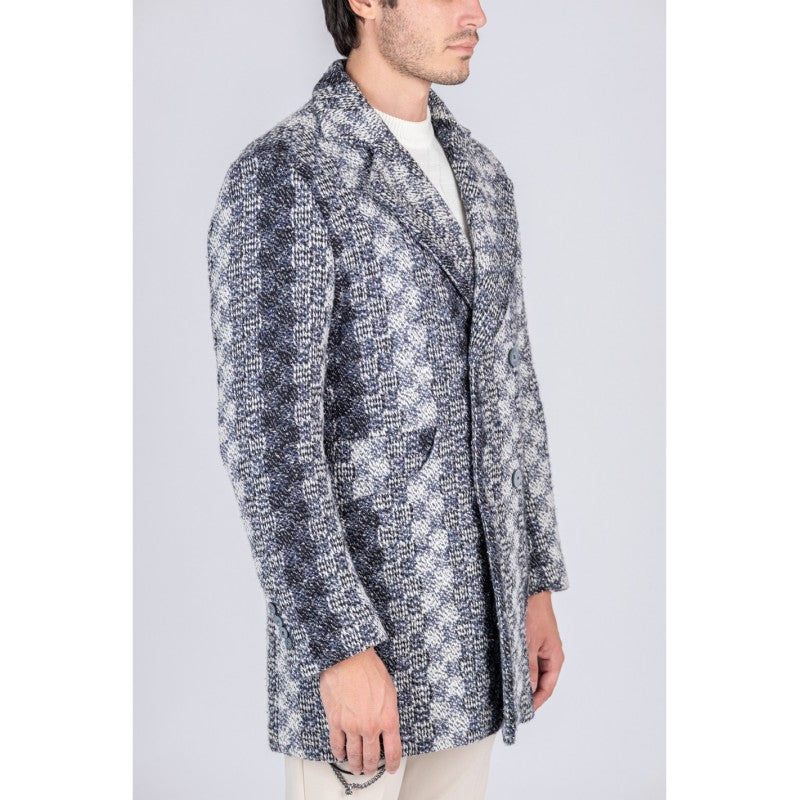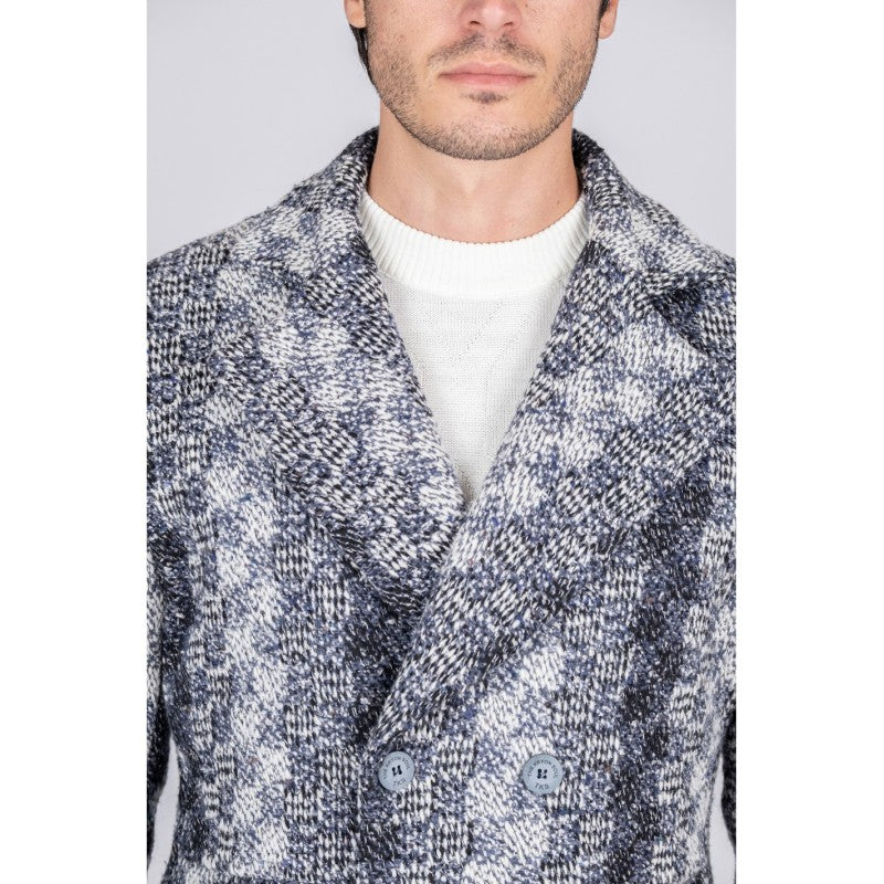 Doppiopetto innovativo TKS: fantasia scozzese e lavorazione effetto ferri, perfetto per outfit unici e versatili. Comfort e calore incontrano il design sofisticato.