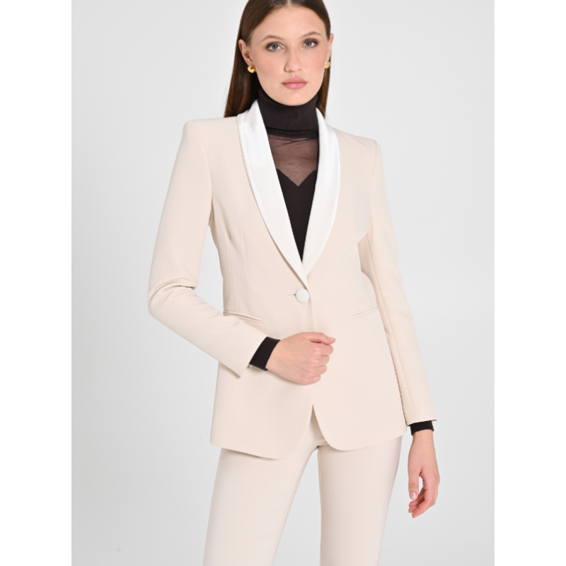 Giacca monopetto in velluto Rinascimento con bavero tondo e mono bottone. Disponibile anche curvy. Abbinabile a pantalone coordinato per un tailleur elegante