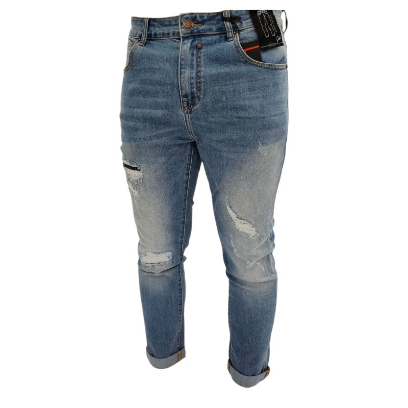 Splendido jeans skinny con rotture e toppe