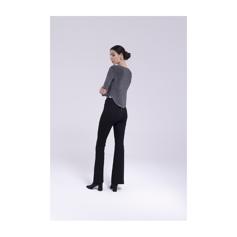 Scopri la maglia slim con brillantini AN-AIM, fondo curvo e collo svasato: eleganza e versatilità per ogni occasione.
